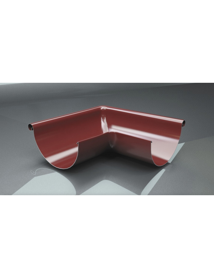 Угол желоба изготовлен из оцинкованной стали, что обеспечивает высокую стойкость к коррозии и устойчивость к воздействию атмосферных явлений. Этот материал применяется в водосточных системах, что гарантирует надежность и долговечность продукта.